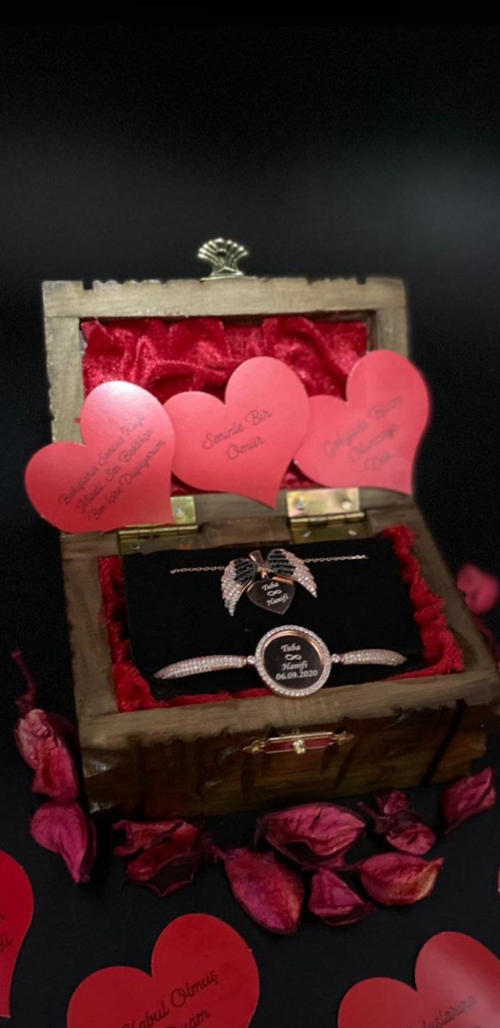 925 AYAR GÜMÜŞ BİLEKLİK VE KOLYE – AHŞAP SANDIK KUTULU HARİKA SET