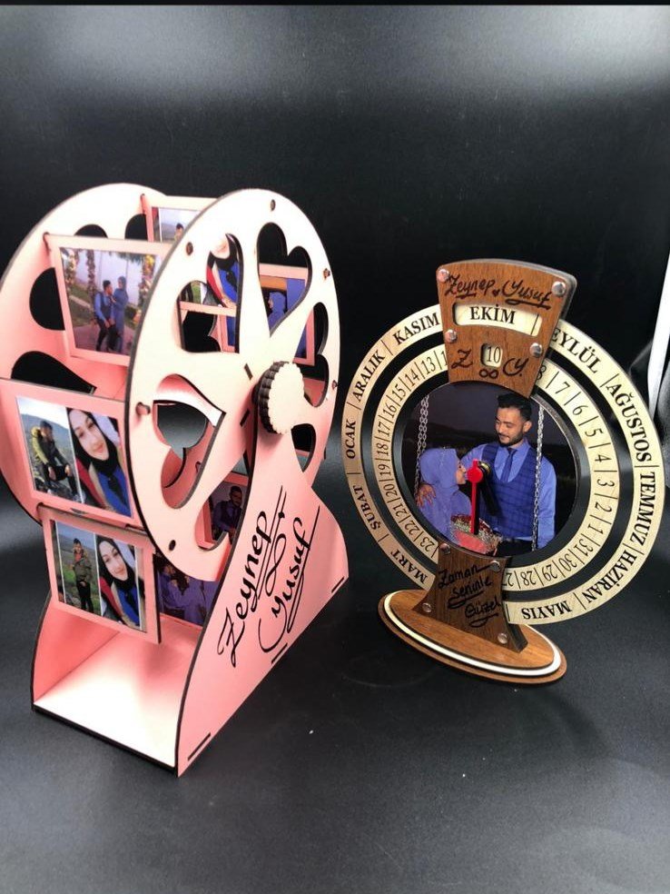 TAKVİMLİ SAAT VE RESİMLİ DÖNEN ÇARK – KİŞİYE ÖZEL YAZI