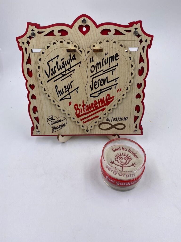 AHŞAP YAZILI RESİM ÇERÇEVESİ – YANINDA KUM SANATI HEDİYE