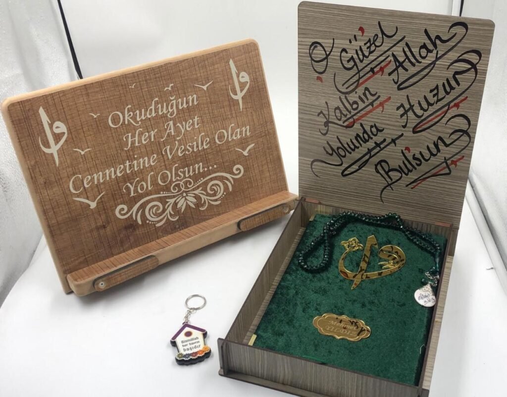 3.699,00₺AHŞAP RAHLELİ KURAN-İ KERİM / KİŞİYE ÖZEL YAZI VE İSİMLİ EN GÜZEL SET .