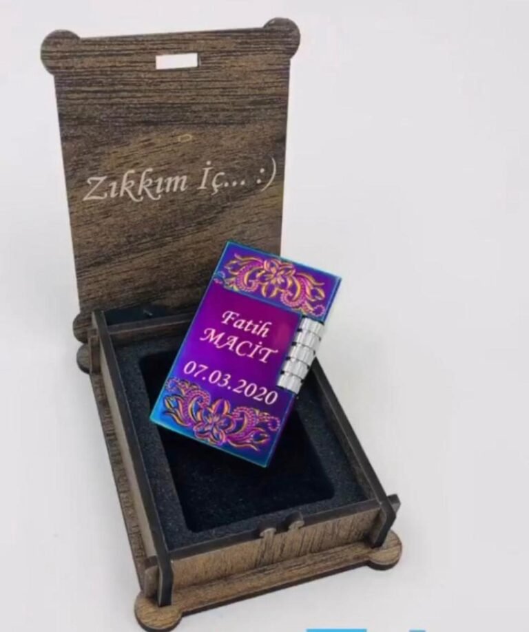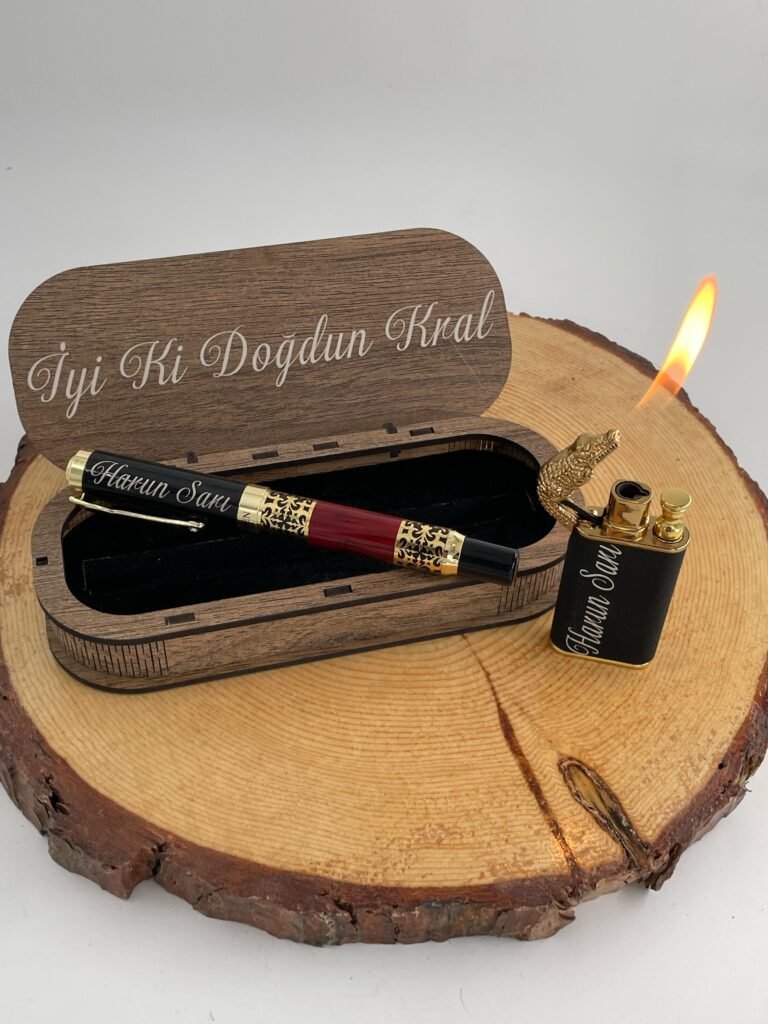 ŞIK TASARIMI İLE KOLAY KULLANIMLI ÇİFT REZİDANSLI TUŞLU ÇAKMAK LAZER KESİM AHŞAP KUTULU