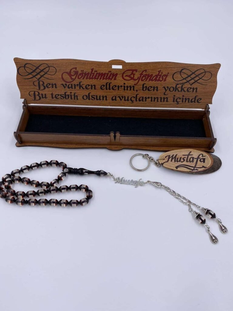 Kişiye Özel Gümüş isimli Toz Sürmeli Kehribar Anahtarlık Hediyeli