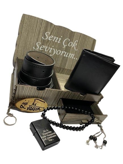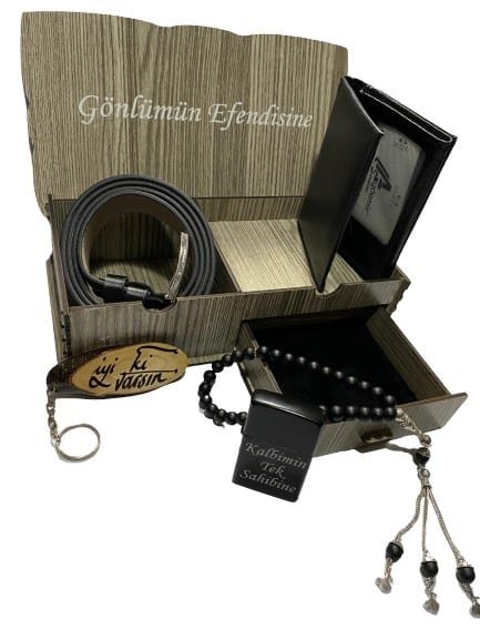 Ahşap, Çekmeceli Kutulu Kemer, Cüzdan, Tesbih, Çakmak Seti