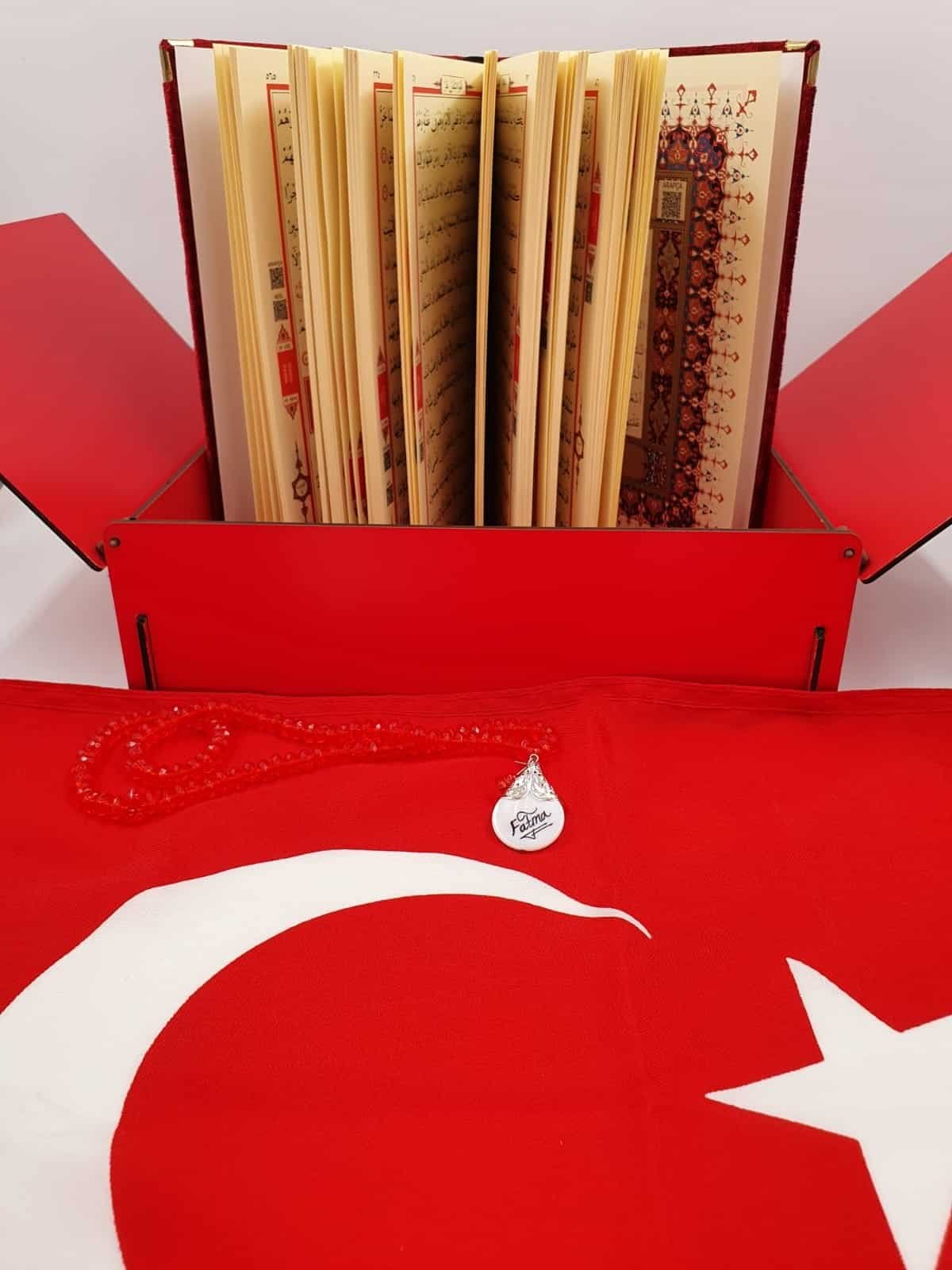 Ahşap Kutulu Ay Yıldız Bayraklı Kadife Kuran