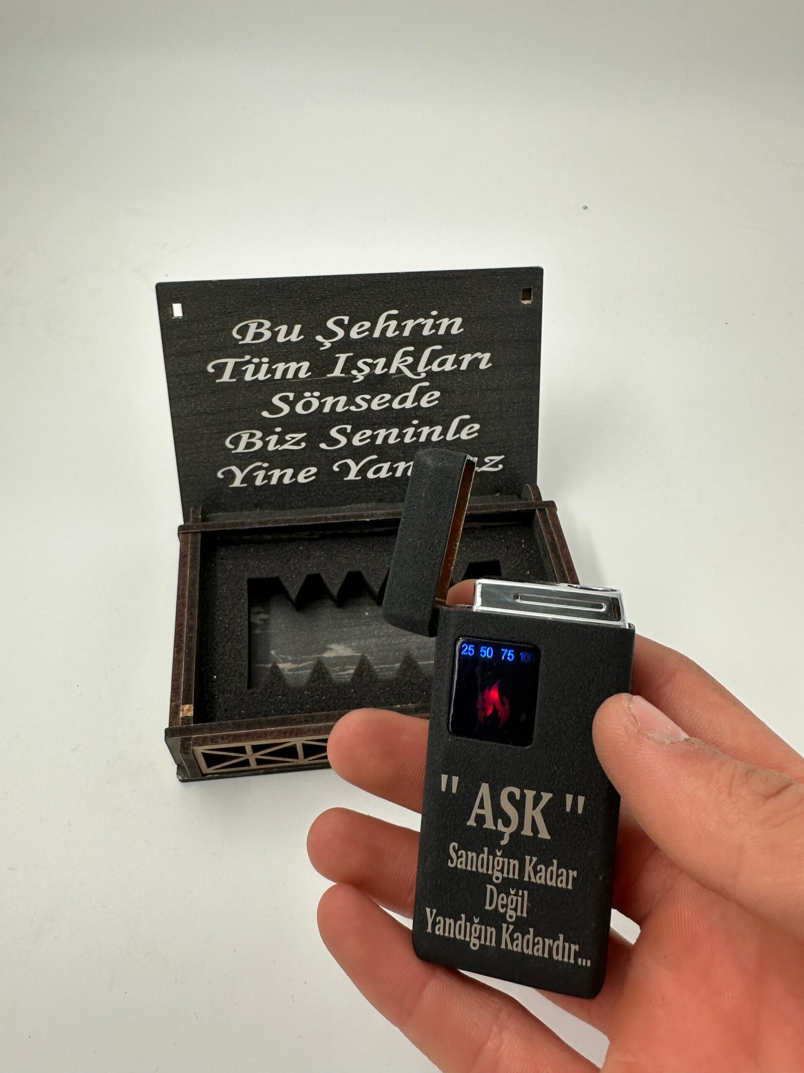 ÖZEL YAPIM AHŞAP KUTU İÇERİSİNDE DOKUNMATİK ÇAKMAK