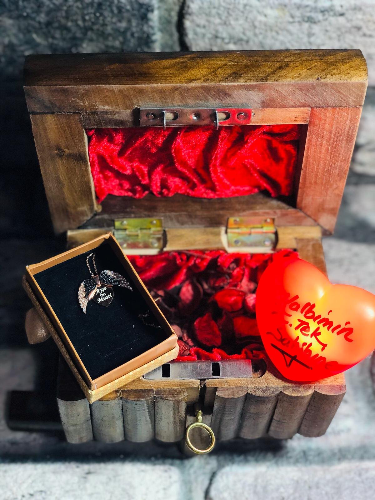 El Yapımı Şifreli Kutulu Kombin 925 ayar gümüş melek kanadı kolye