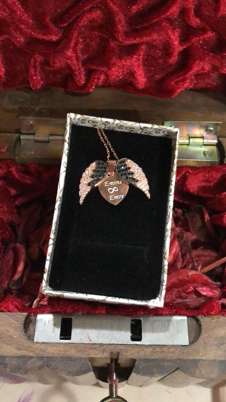 “El Yapımı Şifreli Kutulu Kombin 925 ayar gümüş melek kanadı kolye” için yorum yapan ilk kişi siz olun