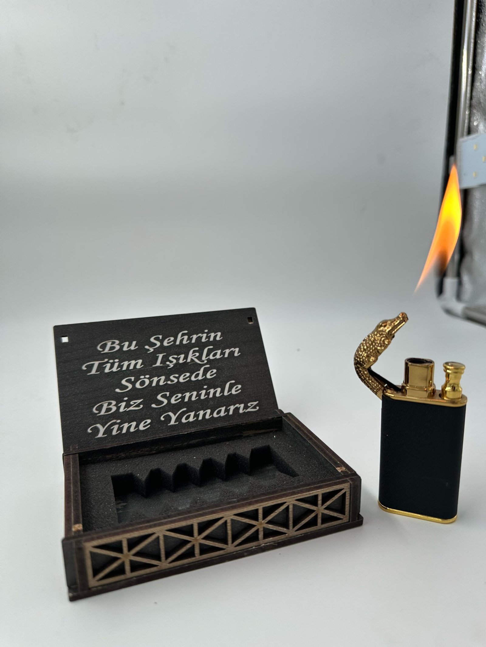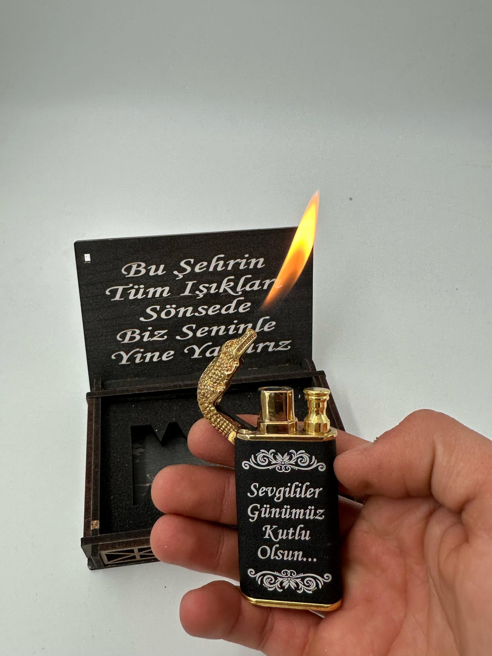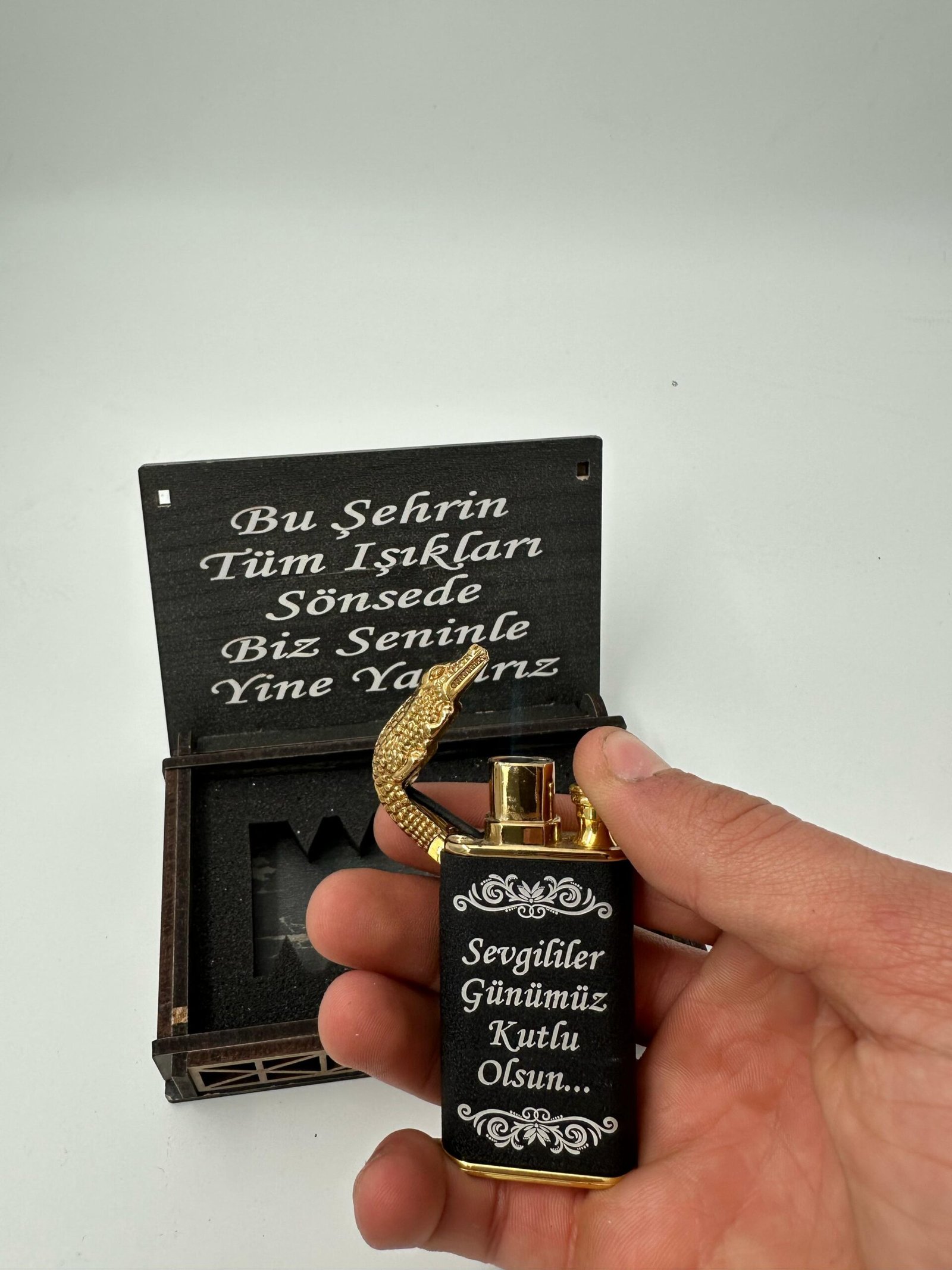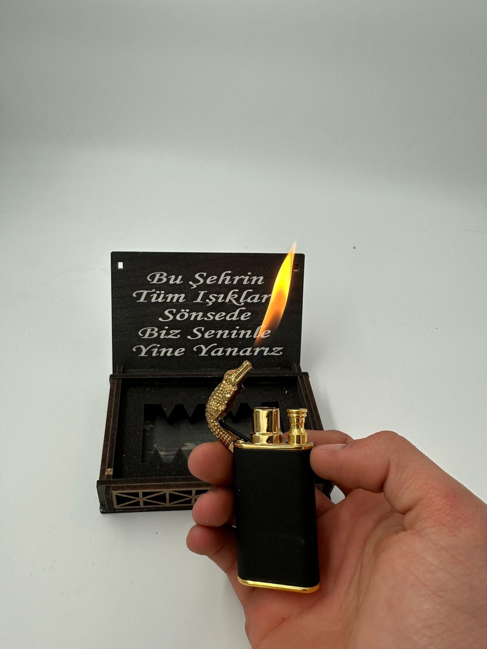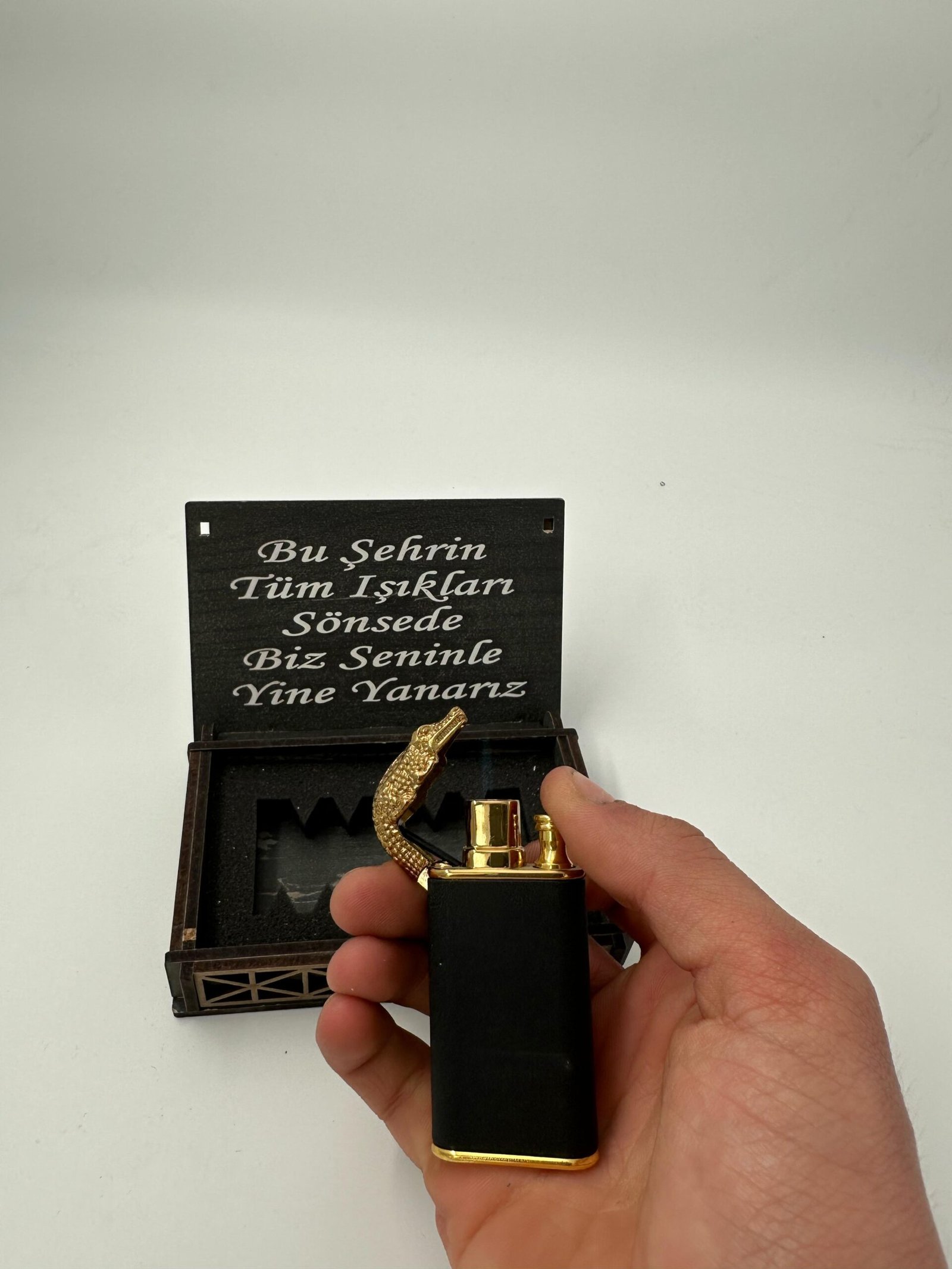 KİŞİYE ÖZEL AHŞAP KUTULU EJDERHA GÖRÜNÜMLÜ ÇAKMAK