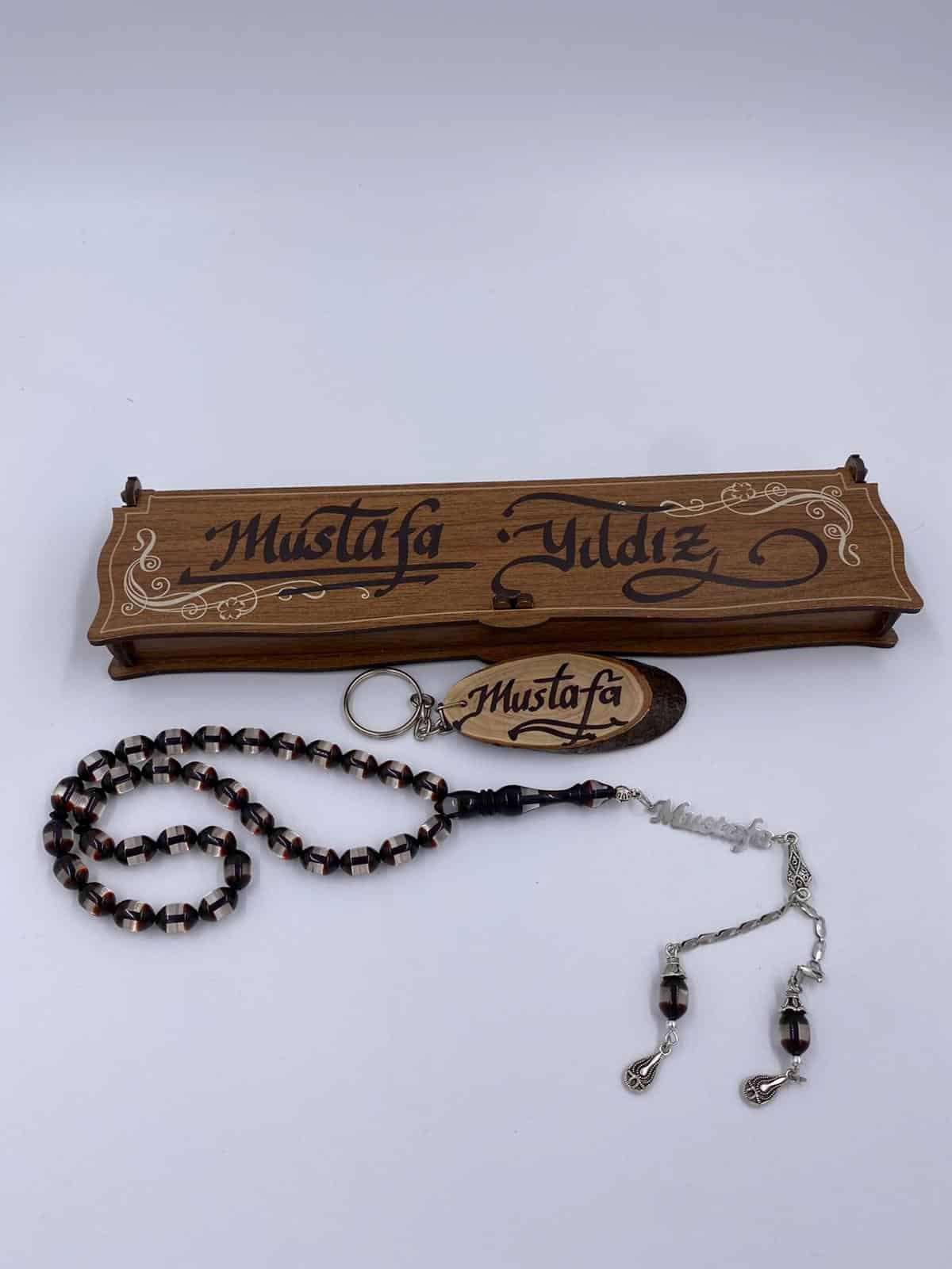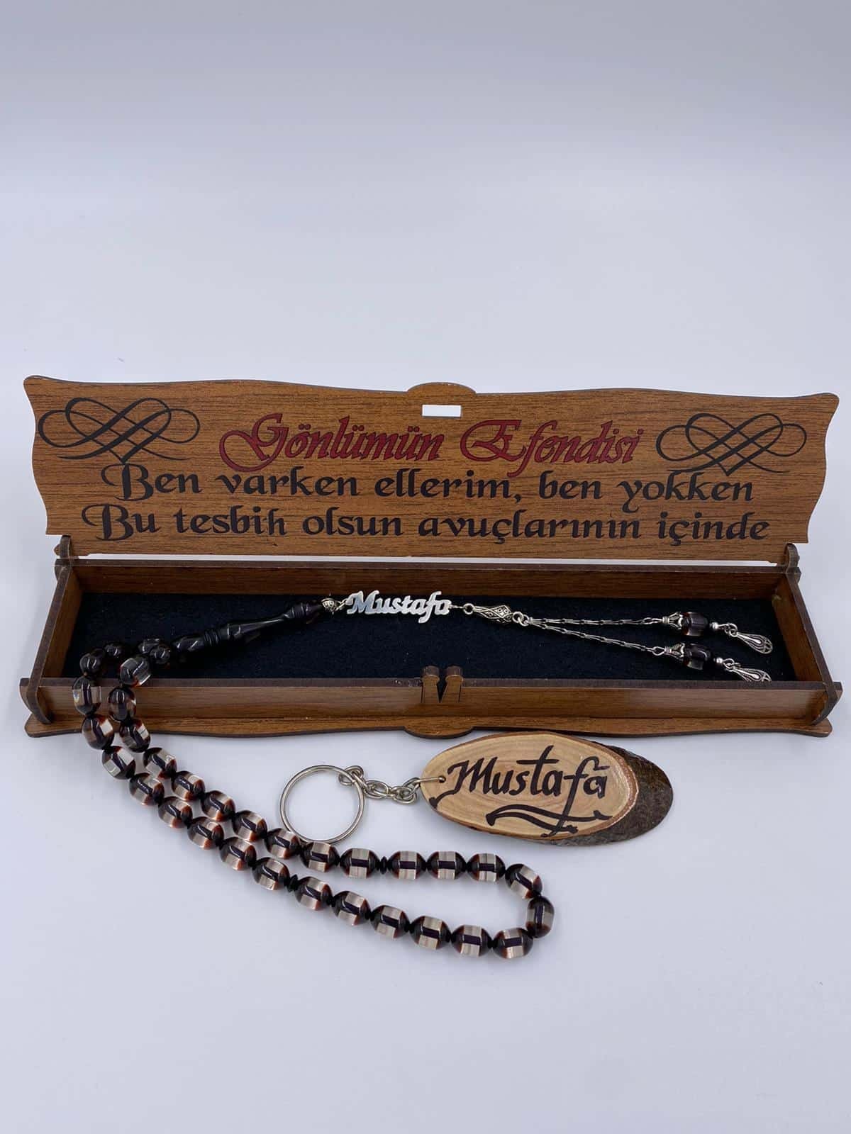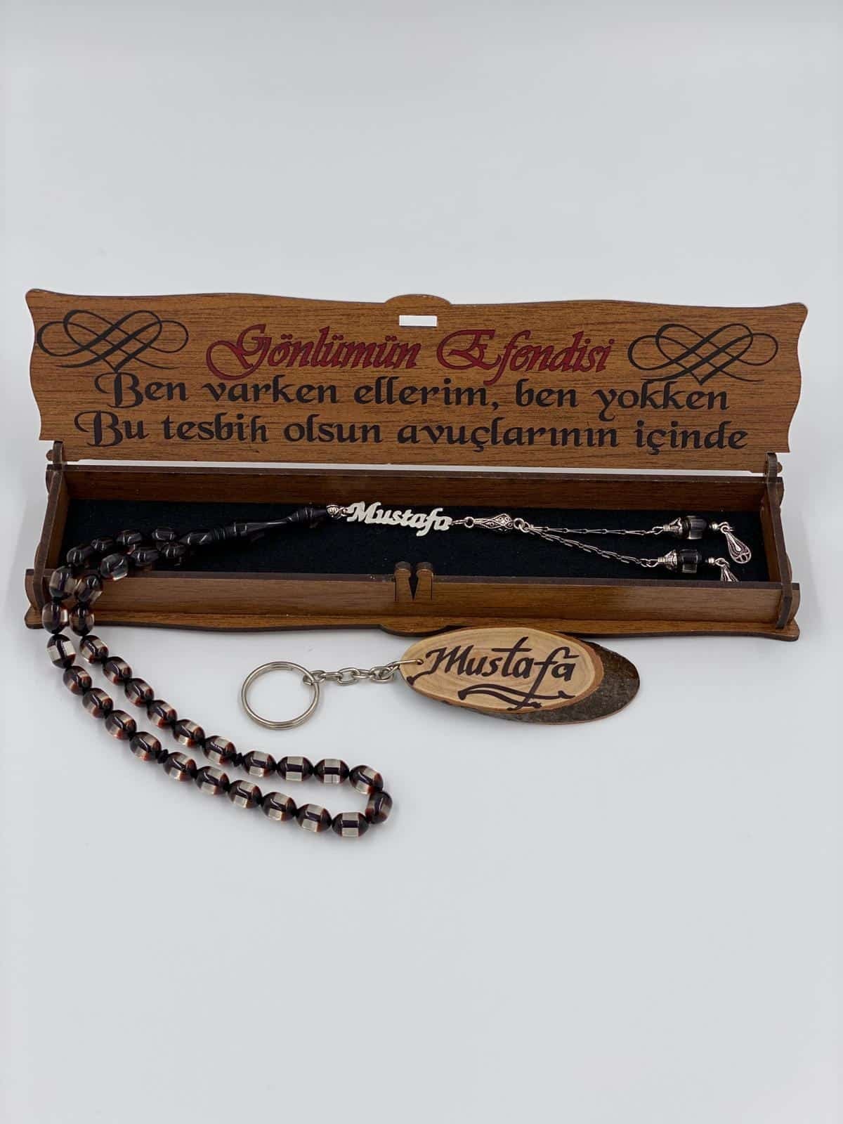Sürmeli Toz Kehribar Gümüş İsimli Tesbih Anahtarlık Hediyeli
