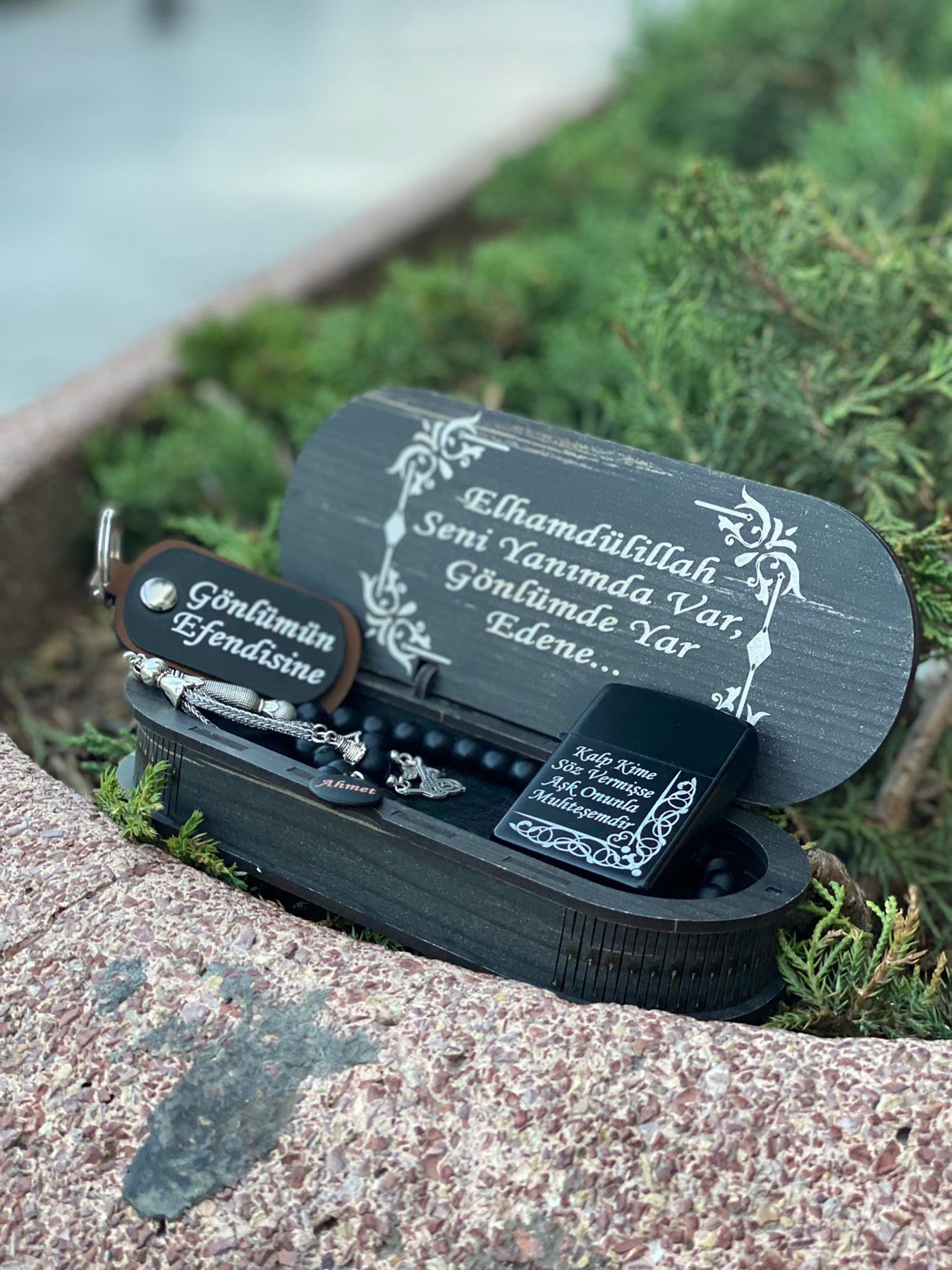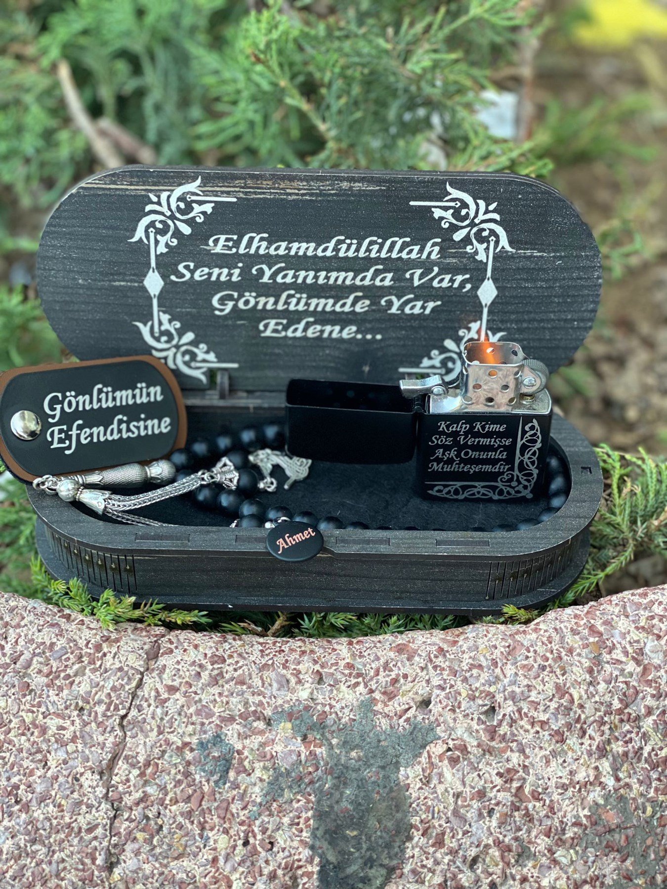 KİŞİYE ÖZEL HAZIRLANAN ÇAKMAK VE TESPİH SETİ -ANAHTARLIK VE AHŞAP KUTU HEDİYE