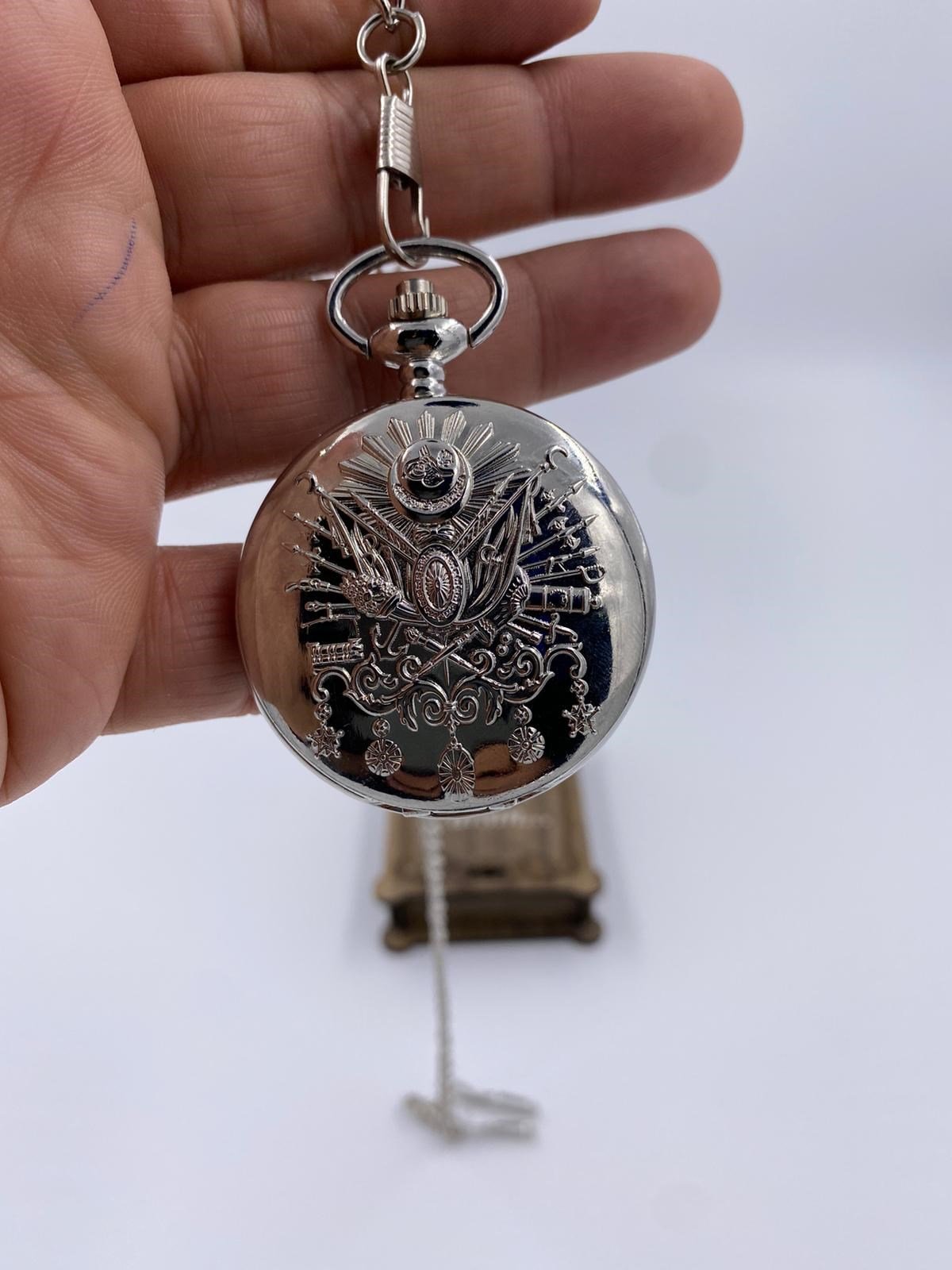Osmanlı ArmalıTasarım Gümüş Renk Köstekli Cep Saati