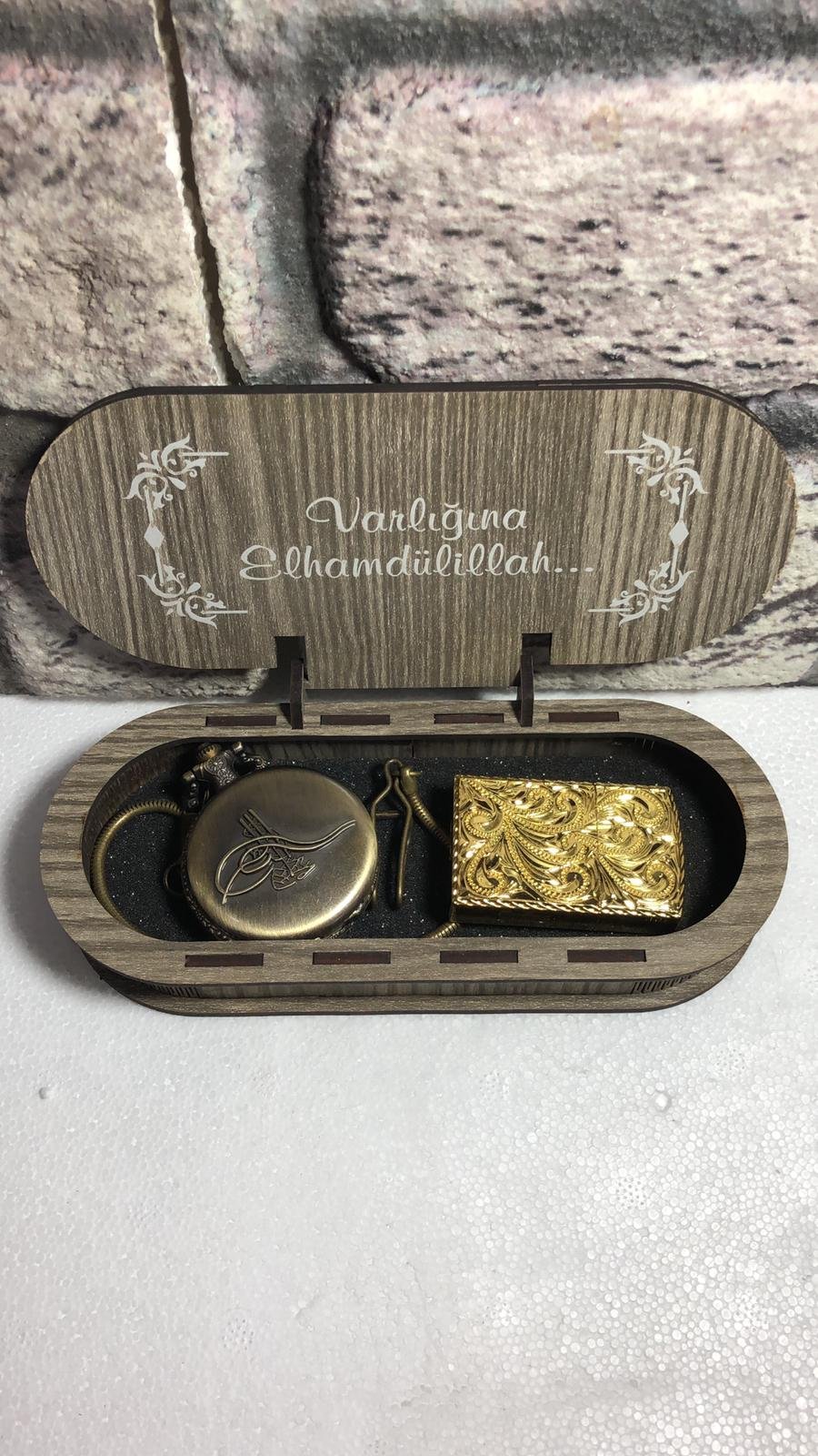 Köstekli Saatli ve Çakmaklı Kutu Kombin
