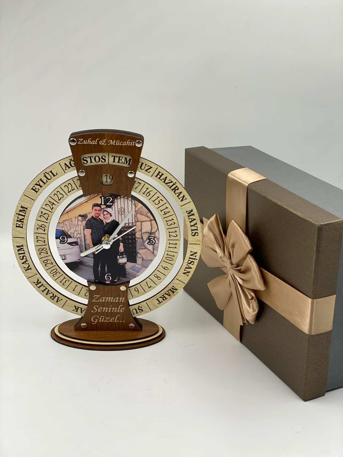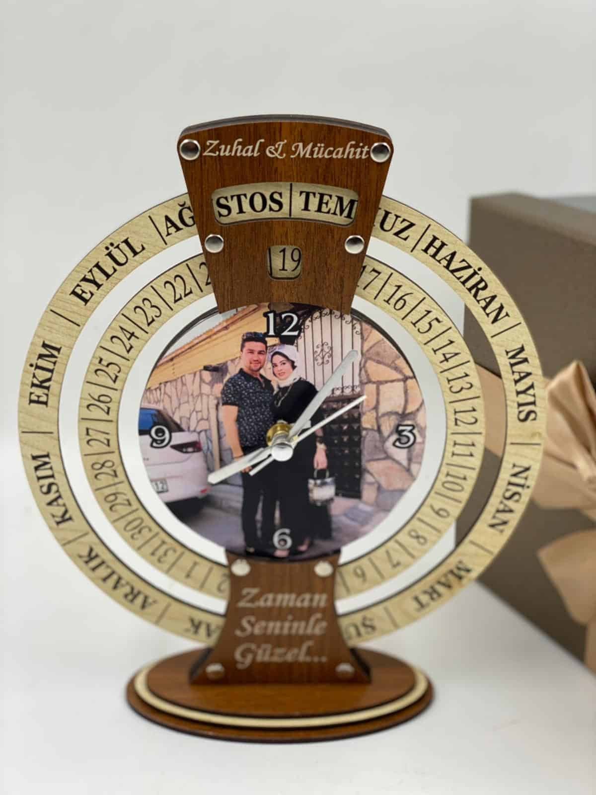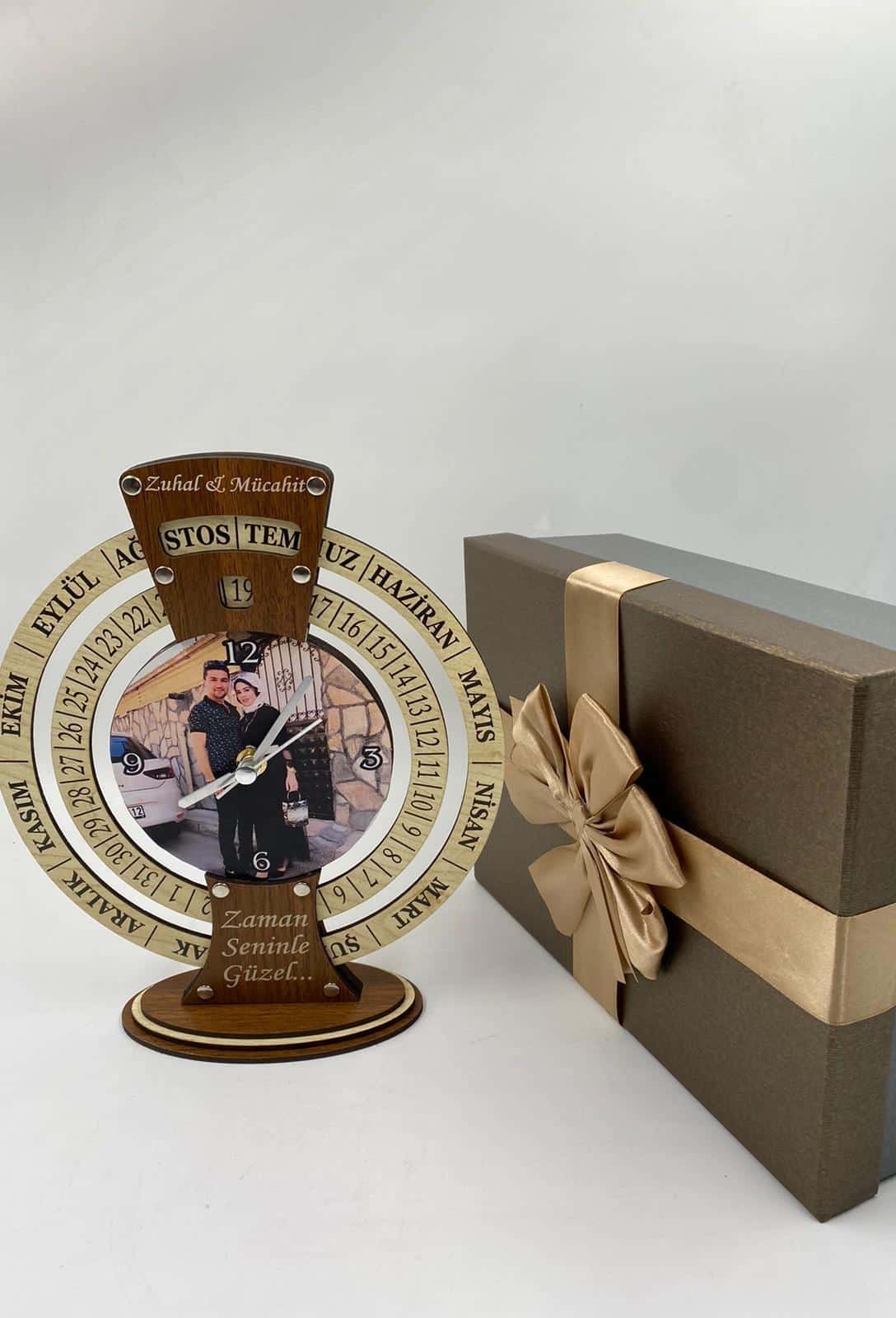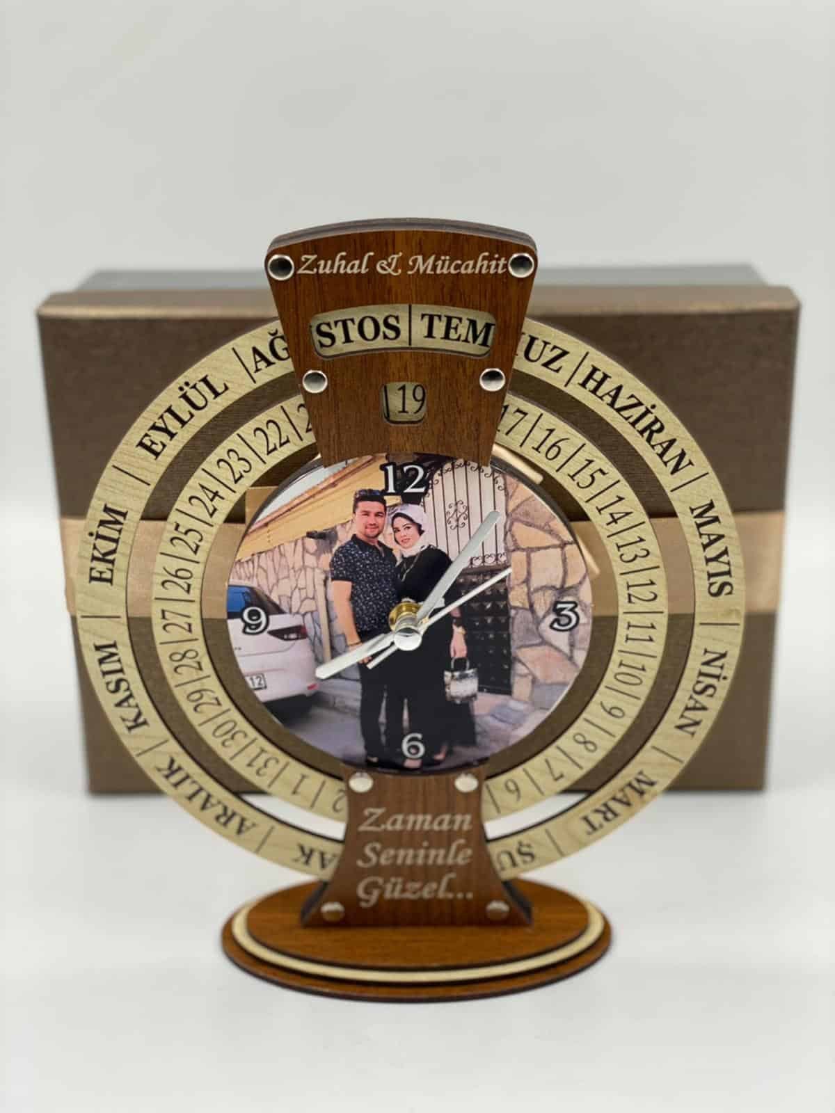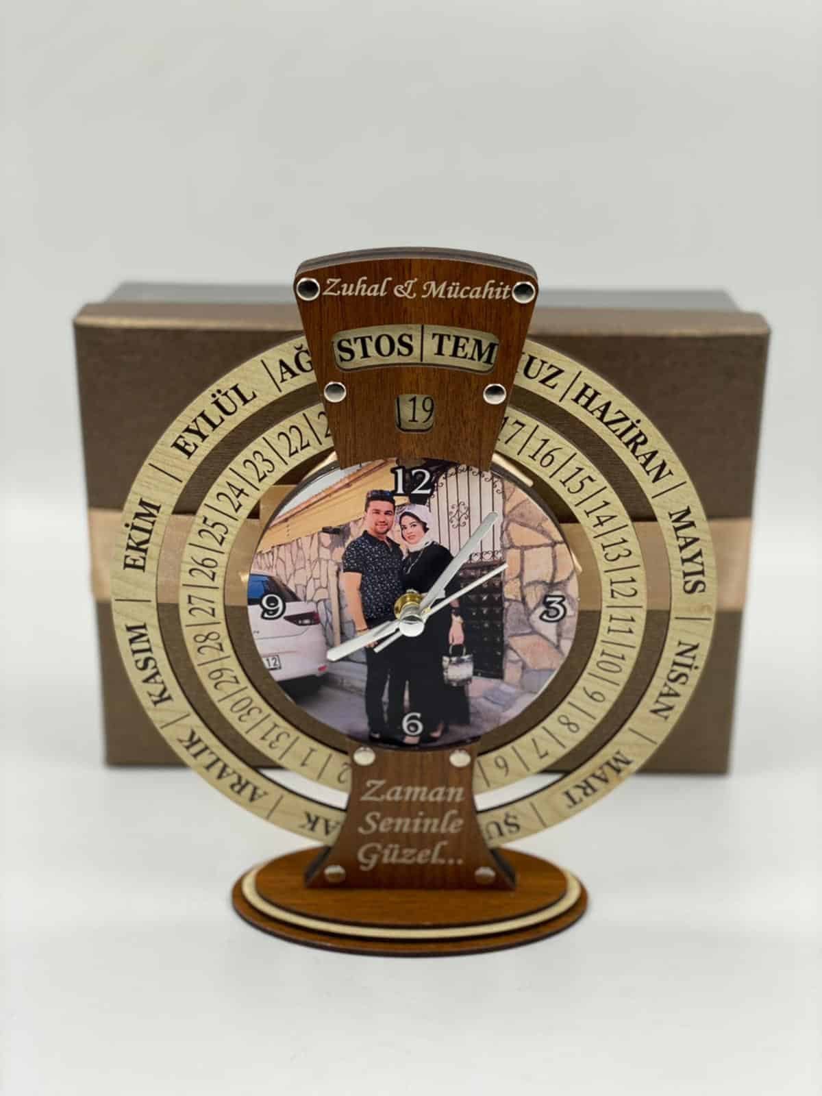 Özel Kutulu Masa Üstü Kişiye Özel Resimli Yazılı Takvimli Saat