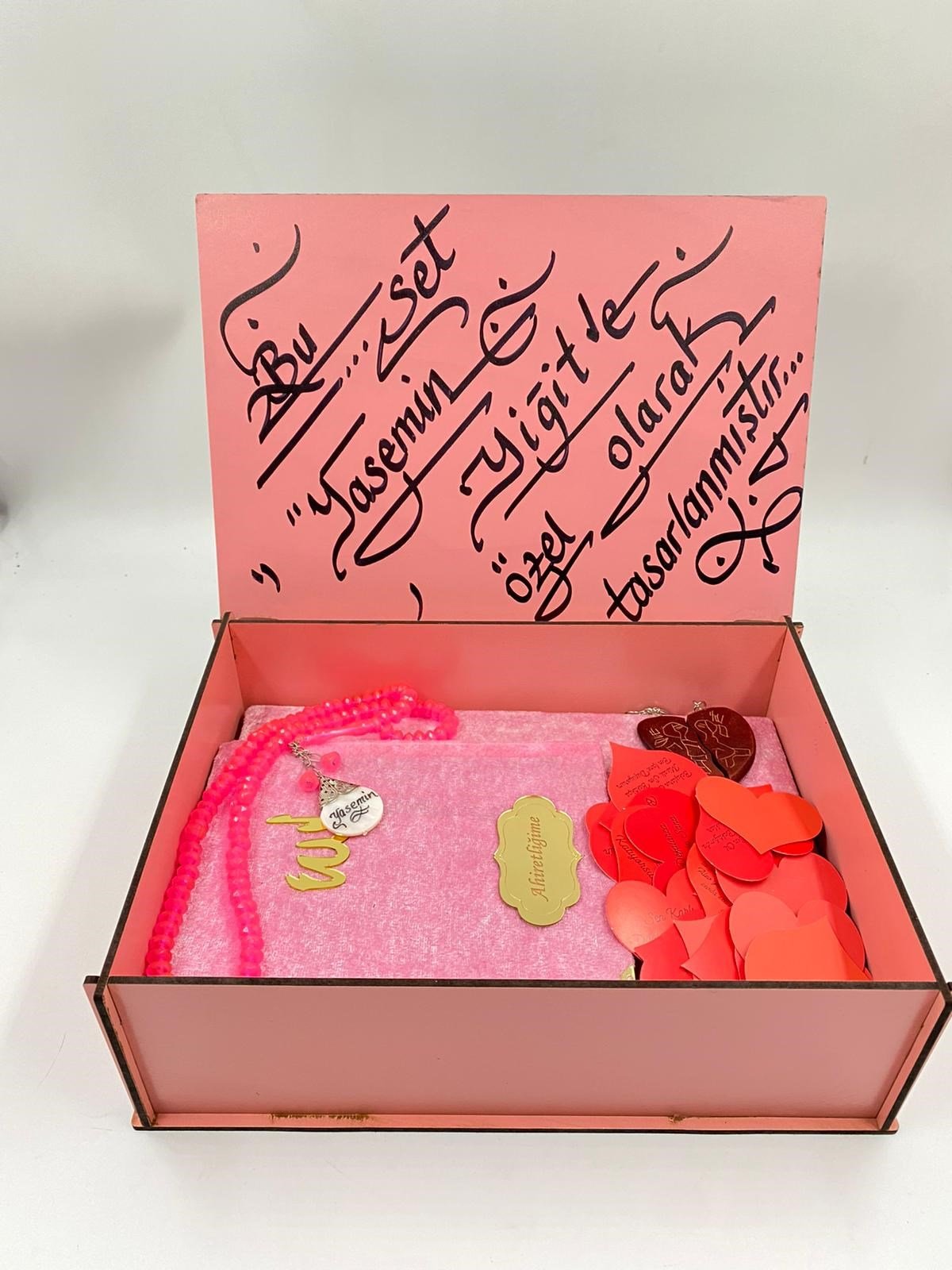 ⚫Kutu rengi 3 tanedir :pembe – kırmızı – ahşap (lütfen 1.metin yazan yere belirtin.)