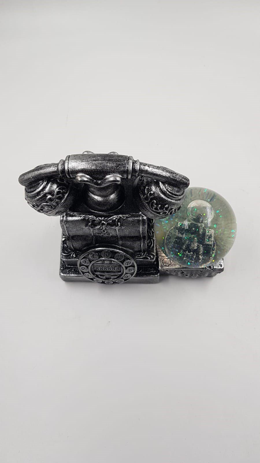 TELEFONLU ANTİKA KAR KÜRESİ – GÜMÜŞ RENK – DEKORATİF KAR KÜRESİ